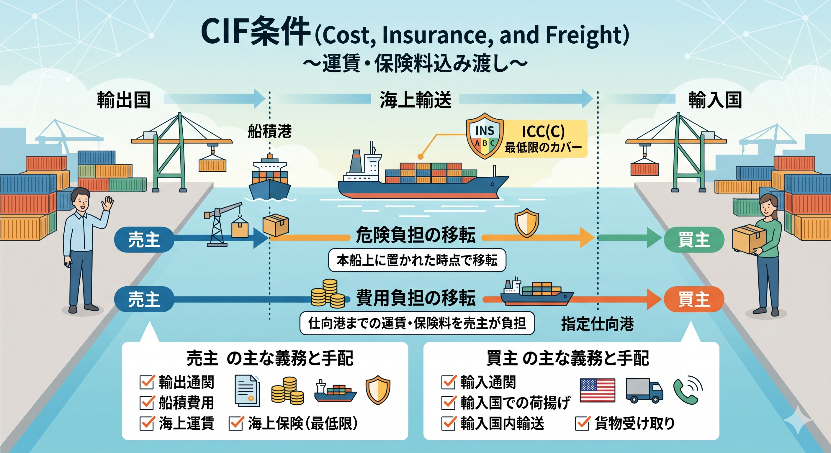 FOBとCIFの違いを比較